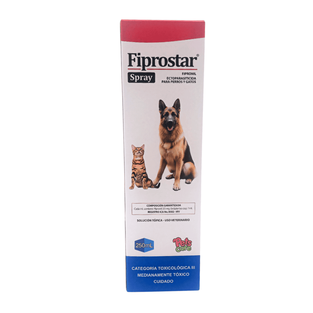 FIPROSTAR® SPRAY está indicado para el tratamiento y control de los ectoparásitos de los perros y gatos, causados por pulgas (Ctenocephalides felis, Ctenocephalides canis), garrapatas (Rhiphicephalus sanguineus, Ixodes scapularis, Ixodis ricinus, Dermacentor variabilis) y piojos (Trichodectes sp., Otodectes cynotis, Felicola sp.).